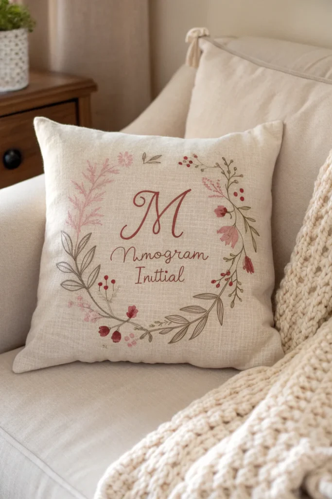 A custom embroidered cushion or monogrammed throw blanket adds a deeply personal touch to her sofa or bedroom — one of those Mother’s Day home decoration ideas that she’ll reach for and notice every single day without it feeling overly sentimental.
