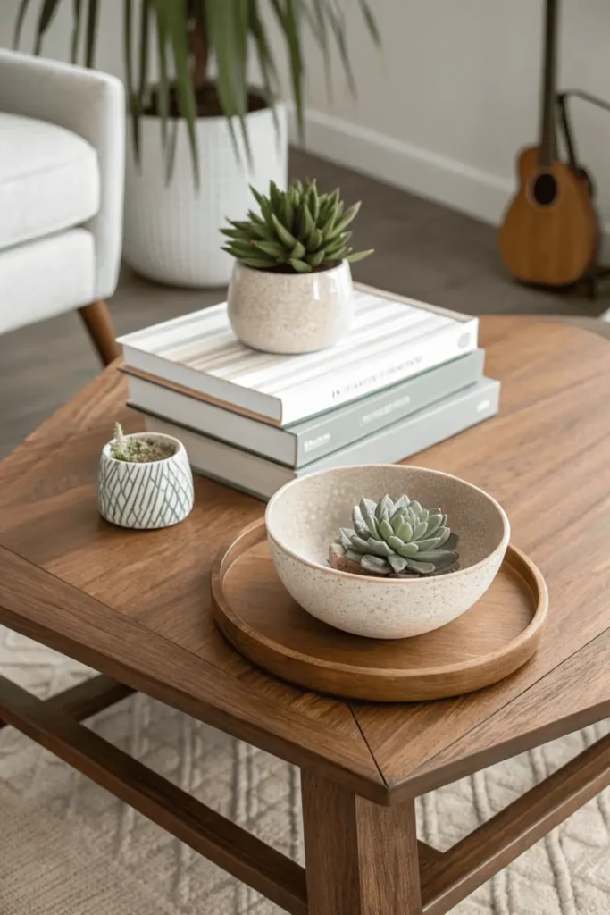 Pro Tip: Stick to the “triangle rule” on coffee tables—arrange three items of varying heights in a triangular formation, then stop to maintain simple home decor principles without over-styling.