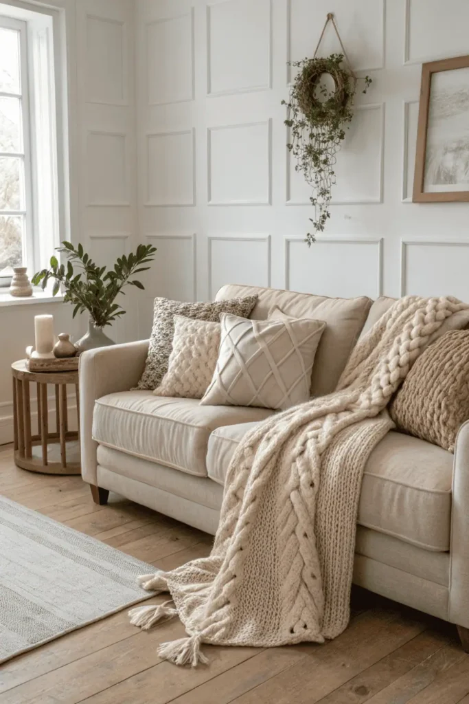 4. Textured Throw Pillows and Blankets