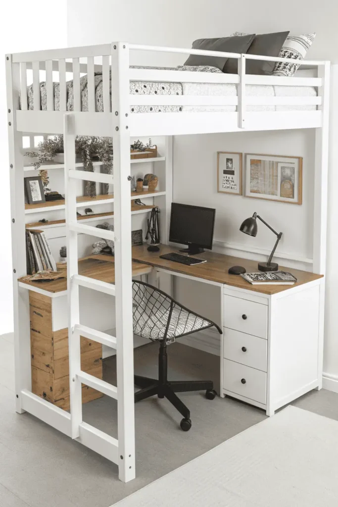 | Loft Bed with Desk Under | Very High – vertical | $$-$$$$ | Medium-Hard – assembly | Low – permanent | High ceilings, young adults |