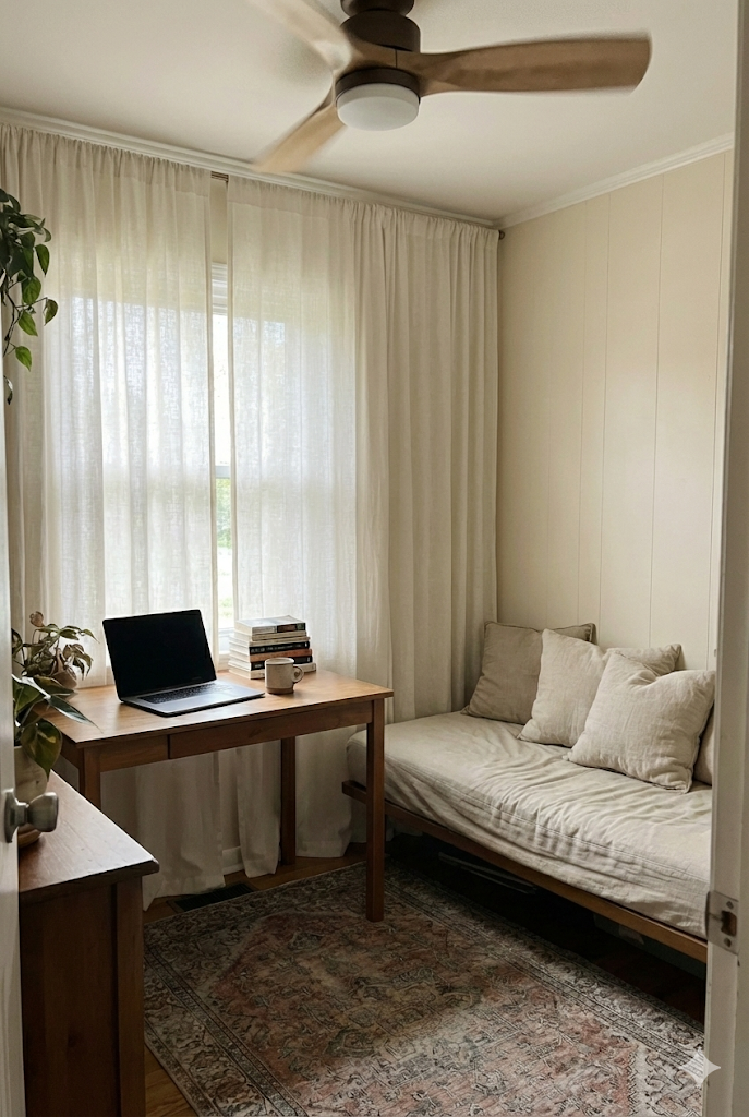 🌟 Window Treatments: Install curtains or blinds that provide privacy and light control