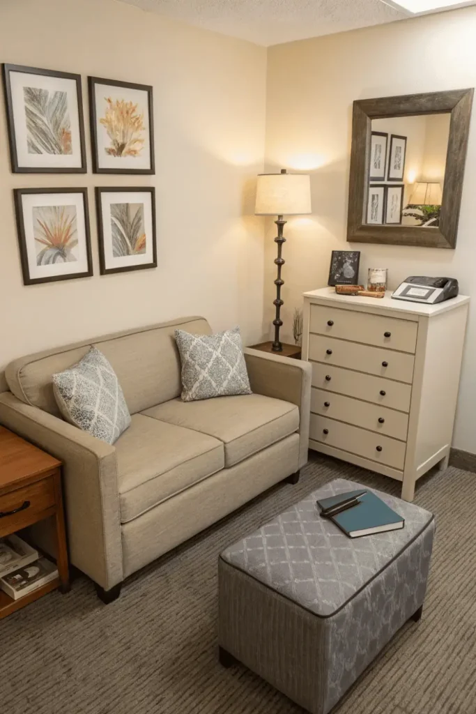 While the sofa bed is the star, supporting furniture makes your guest room truly functional and welcoming. These additional pieces don’t need to be expensive, but they should be thoughtfully chosen.
