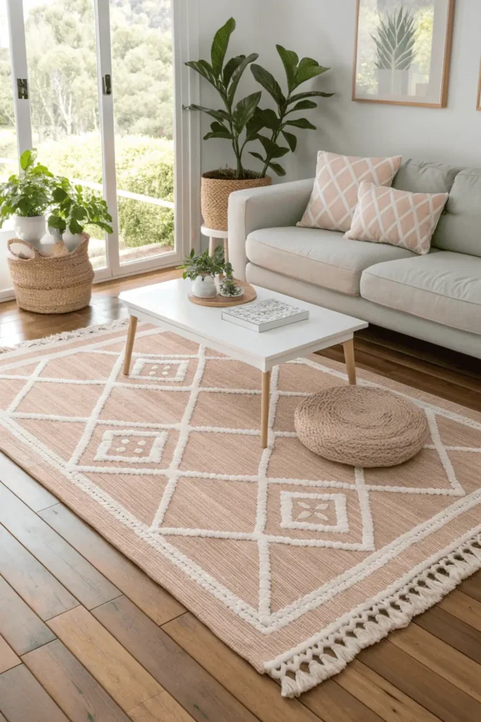 Natural fiber rugs like jute, sisal, and seagrass introduce textural contrast while keeping spring home decor grounded and organic. Layering a smaller patterned rug over a larger neutral base creates dimensional interest and defines spaces.