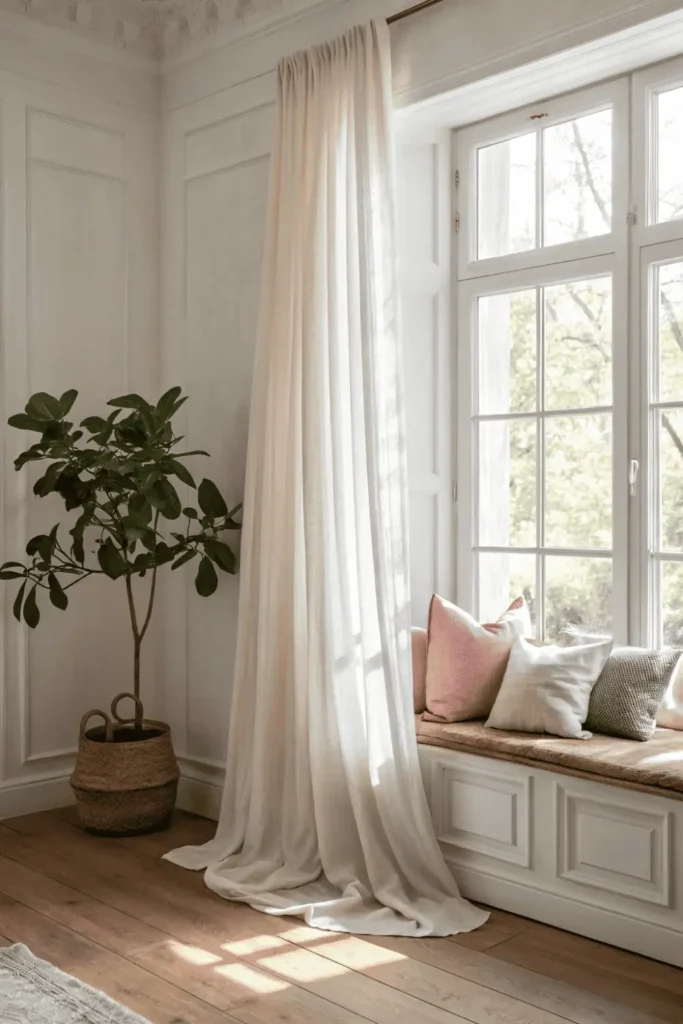 Pro Tip: Hang curtain rods 4-6 inches above window frames and let panels puddle slightly on floors for an elegant, luxurious look.