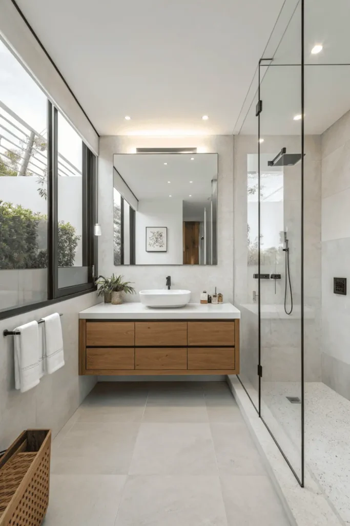 | Modern Minimalist | $$-$$$$ | Low – easy cleaning | Excellent – timeless | Contemporary homes, clutter-averse | White tile, wood, glass |