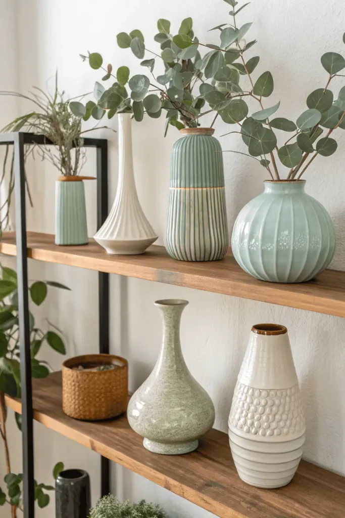 Group collections in odd numbers (3, 5, 7) on shelves or mantels for curated displays that showcase your finds. The varied heights, colors, and textures create visual interest while holding fresh flowers, greenery, or standing alone as sculptural objects.