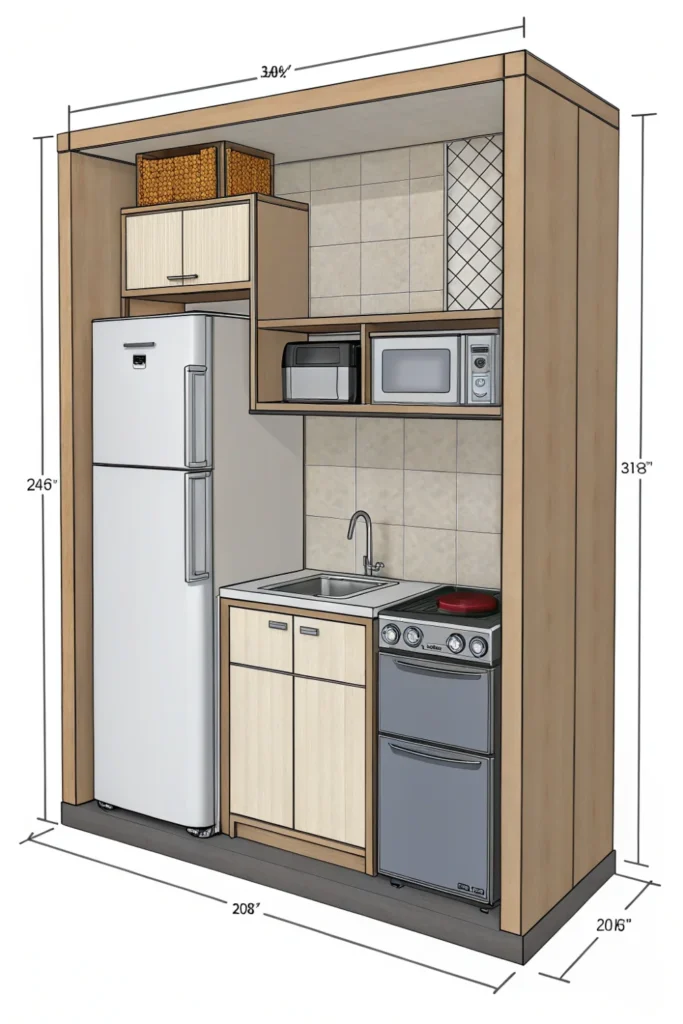 Evaluate your actual cooking habits honestly before planning tiny kitchen design—elaborate cooking requires different solutions than reheating and simple prep. Design around reality rather than aspirational chef fantasies unlikely to materialize.