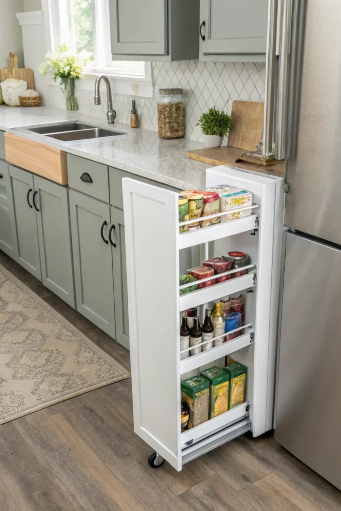 | Rolling Cart Storage | Medium – fills gaps | $-$$ | None – portable | Medium – additional storage | Very High – mobile |